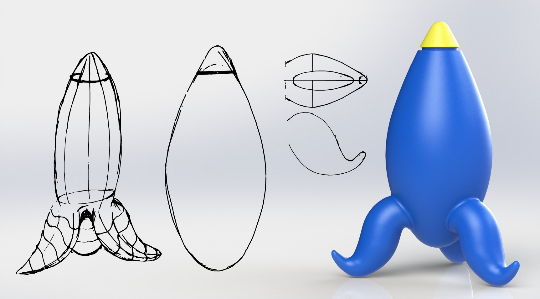 Toy rocket ship with articulating connections designed for 3D printing